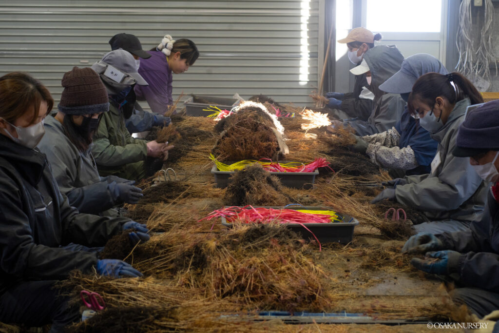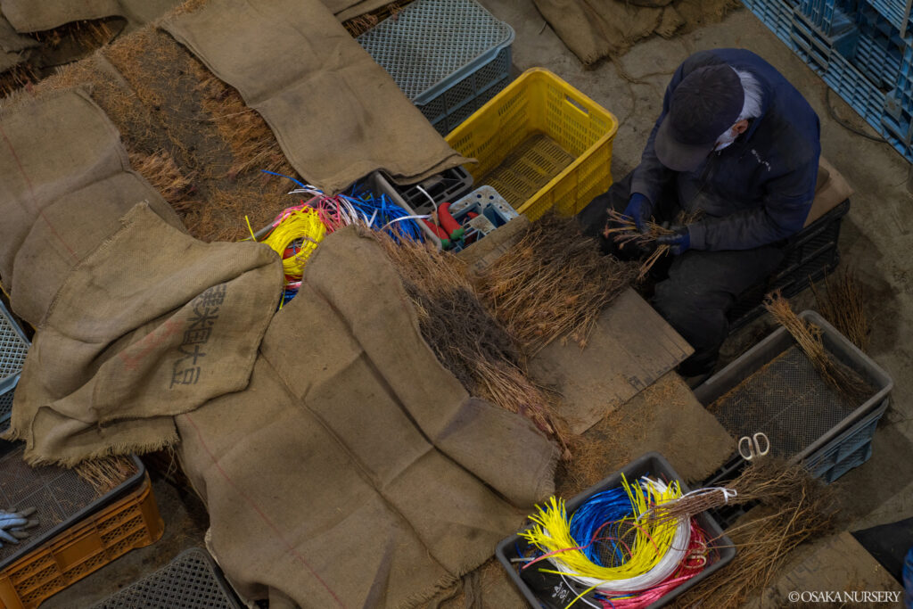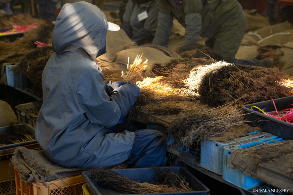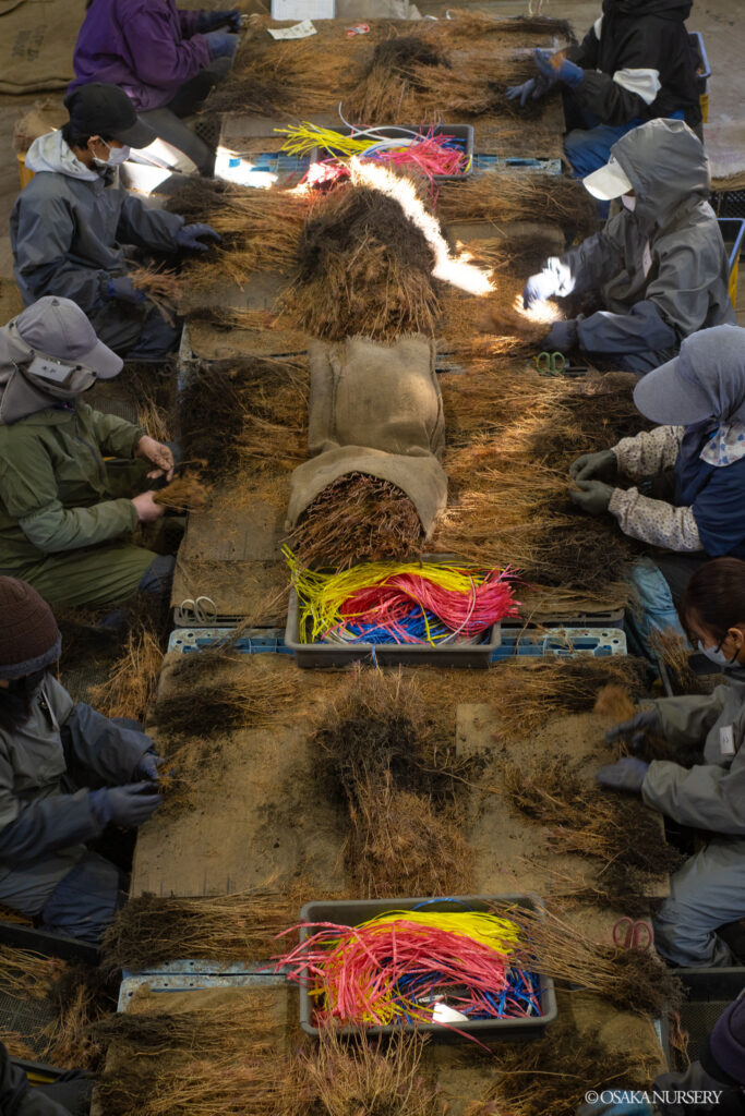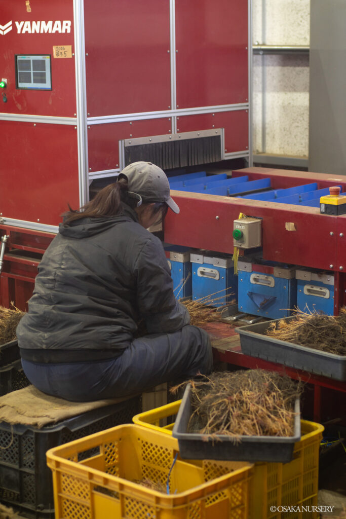 選苗とは、畑で播種した幼苗を、掘り取って大きさで選別する作業です。